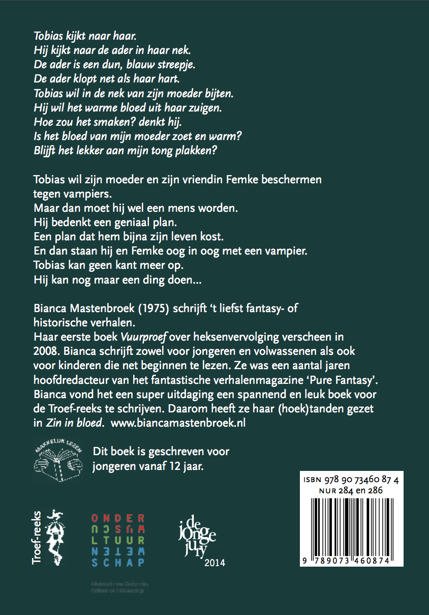 Zin in bloed verscheen bij uitgeverij Van Tricht in de zogenaamde Troef-reeks.